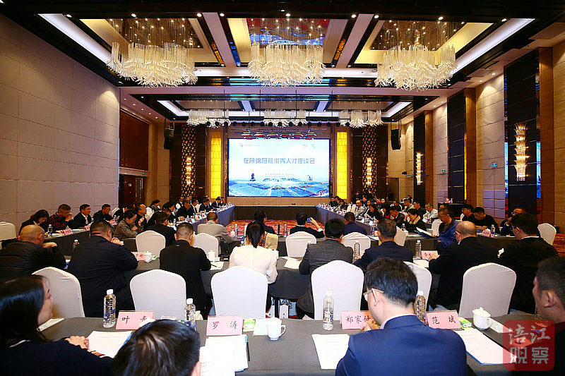 座谈会现场,莫怀学为何明一、黄强、袁玎、杜勇等10名绵阳籍在外优秀人才颁授科技城“招才引智”大使聘书。