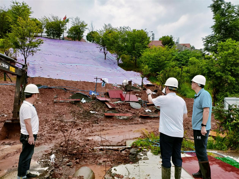 汛情就是命令,责任重于泰山。廖昭宏要求,各单位要树牢底线思维,牢牢压实扣紧防汛减灾工作责任链条,切实履行工作职责;要时刻严阵以待,坚决克服麻痹思想和侥幸心理,加大力度排查自然灾害风险隐患点,尤其在暴雨、洪水期间必须加强防排水设施巡查管理;要坚持人防和技防相结合,通过监控中心大屏,滚动切换各重要点位,实时监测边坡情况,一旦发现滑坡征兆,立即组织撤人。