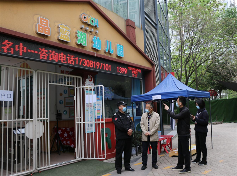 3月24日,教投集团党委书记、董事长陈建强带队到川幼春晖公司、建设街幼儿园、晶蓝湖幼儿园等地,暗访督查疫情防控工作。
