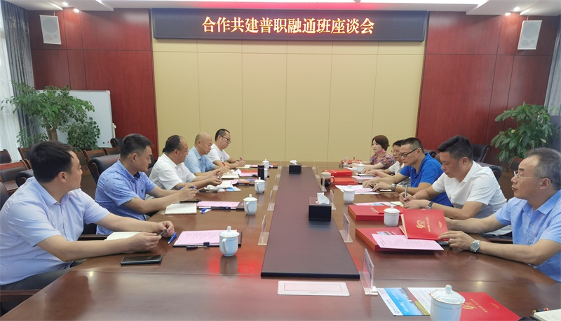 座谈会上,双方就普职融通班的教学管理、师资配置、课程设置、学籍管理等具体事项进行了深入的交流与探讨。