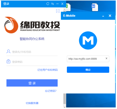 输入服务器地址://oa.myjtfz.com:8999