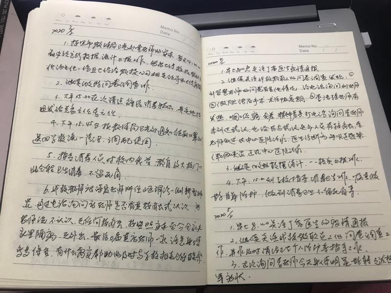 为了保障学校能够顺利开学,李朝辉同志配合部门领导制定了多套应急开学预案,一是梳理和完善传染病防控相关制度,尤其是师生和职工的晨检、因病缺勤登记与报告、隔离和复课制度等。要求校医室一旦发现病例,及时报告、妥善处置,做到早发现、早报告、早隔离、早处置。二是整合自身多方面资源,在假期做好开学消毒药品、防控药品等物资储备,填写《2020年春季开学应急物质采购清单》,并提前预购买消毒片500瓶、高效氯氰菊酯50瓶,以备开学后的防控工作保质保量开展。