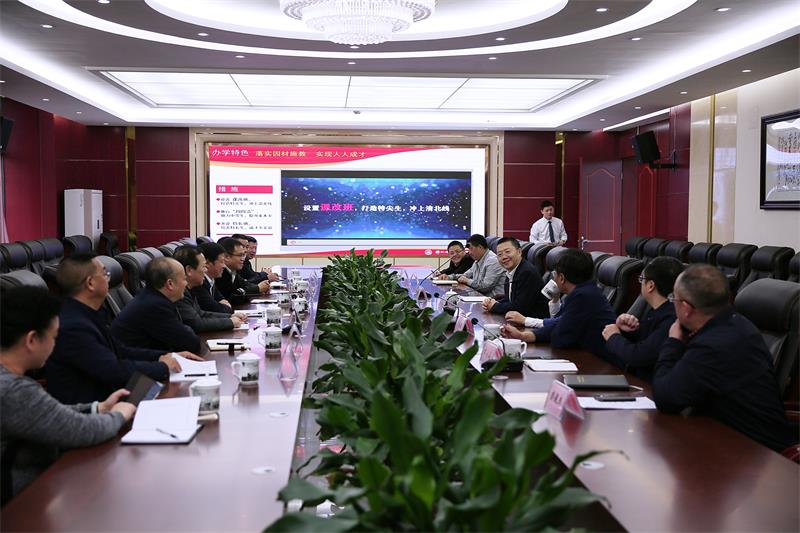 2019年10月15日,由贵州省遵义市教育局局长曾润云带队的教育代表团来到绵阳南山中学实验学校考察、交流,绵阳市教体局局长胡东、副局长陈一帆、市教科所所长龚林泉、南山中学实验学校校长谭世贵等领导参加交流会。