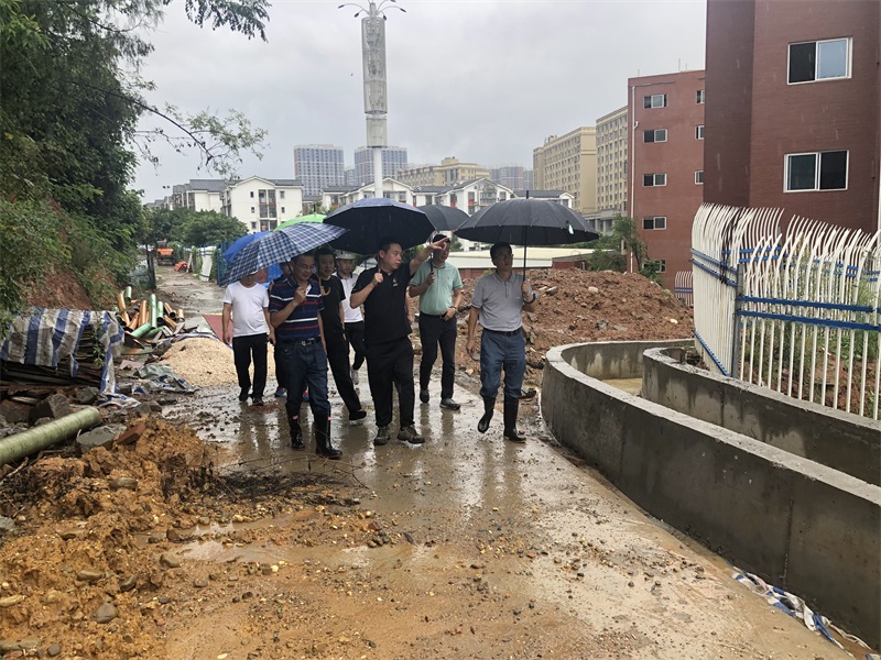 近日,我市出现连续强降雨天气,按照市委市府、市国资委关于加强防汛工作的要求,集团公司高度重视。8月2日下午,由集团公司董事长陈建强带队冒雨前往集团三所实验学校、园区重点道路进行了巡查,集团公司副总经理田仕富、郭劲,科达置业公司及学校相关人员陪同巡查。