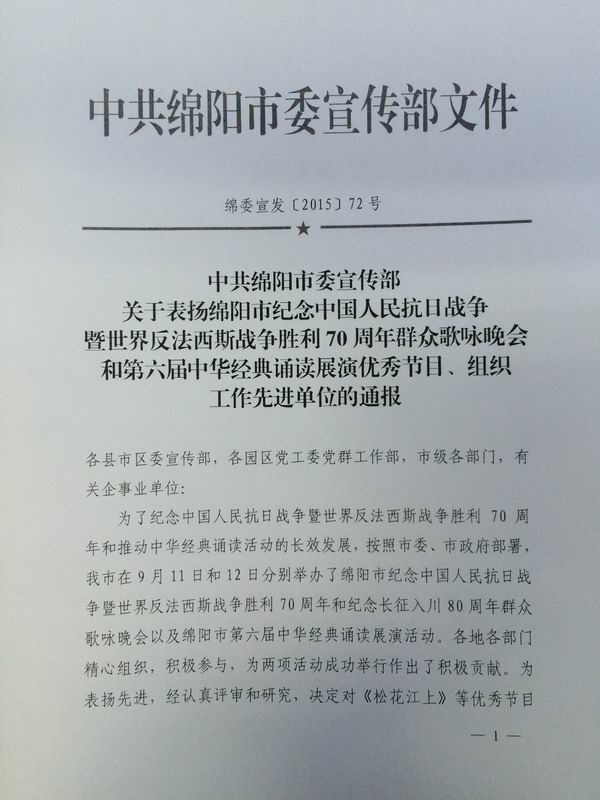 教投公司选送节目《诵千古美文,做时代骄子》荣获第六届中华经典诵读展演优秀节目特等奖