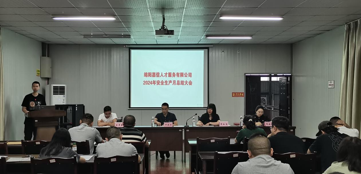 6月26日,嘉信人服公司组织召开了2024年“安全生产月”总结大会。公司执行董事、总经理万承刚出席会议并讲话,副总经理席加静主持会议,公司班子成员及全体职工参加会议。