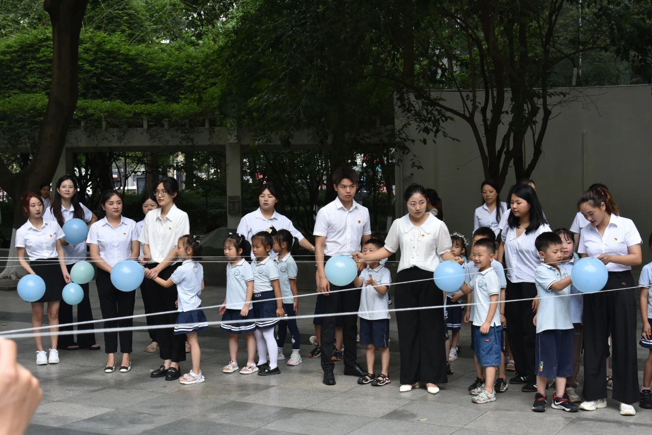 在老师的指导下,小朋友们还亲手体验了气球火箭、神奇的泡泡等科学小实验。“发射现场”围了一圈又一圈的小朋友,阳光直直地照在他们脸上,大家都目不转睛地盯着发射台。“气球火箭”载满“燃料”,压强达到发射值……“三、二、一,发射!”