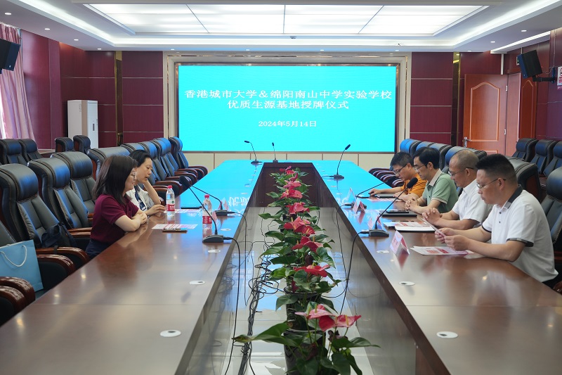 行政楼会议室举行。 绵阳南山中学实验学校党委副书记、校长骆泉龙,香港城市大学(东莞)四川招生组组长、媒体传讯处高级经理江易菲,四川招生组成员、资讯科技经理詹泽瑶等出席仪式。
