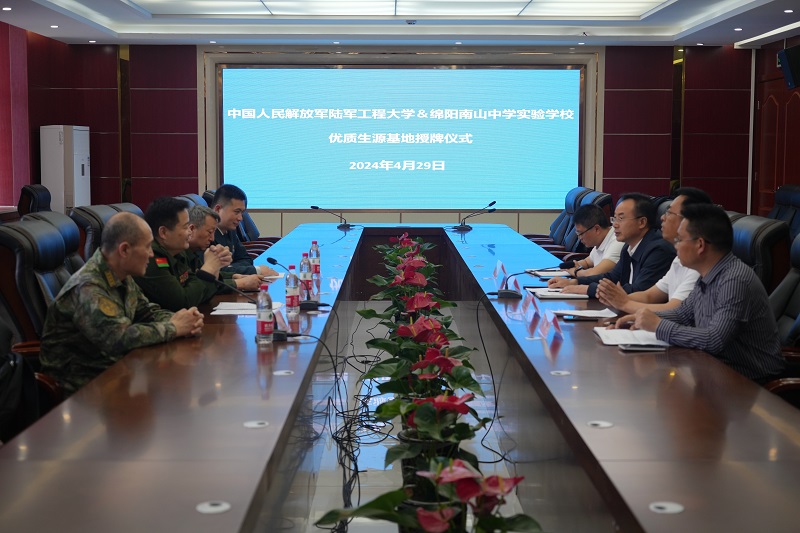 4月29日下午,中国人民解放军陆军工程大学与绵阳南山中学实验学校生源基地校签约授牌仪式在南实行政楼会议室举行。绵阳南山中学实验学校党委书记李芝猛,中国人民解放军陆军工程大学通信工程学院院长徐伟出席仪式。