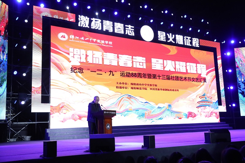 学校党委书记、校长谭世贵致辞,他代表学校向各部门、各年级组、各位参演师生的认真策划、精心准备和全心投入表示衷心感谢,向线下线上观看文艺汇演的领导、师生、家长朋友们表示热烈欢迎。他讲到,2023年是全面贯彻党的二十大精神的开局之年。扶着国家蓬勃的脉搏,贴着时代强劲的心跳,南实在奋斗中前行,开新局,展新貌。我校始终坚持以习近平新时代中国特色社会主义思想为指导,全面贯彻党的教育方针,落实立德树人根本任务,培养德智体美劳全面发展的社会主义建设者和接班人。美育塑造心灵,艺术陶冶情操。今年,在朗诵、演讲、舞蹈、合唱等市级、省级乃至国家级舞台上,南实学子均收获喜人成绩。和美德育,五育融合,已成为南实教育的闪亮名片。最后,他祝愿本次文艺汇演取得圆满成功,祝大家拥有一个璀璨而又难忘的夜晚。