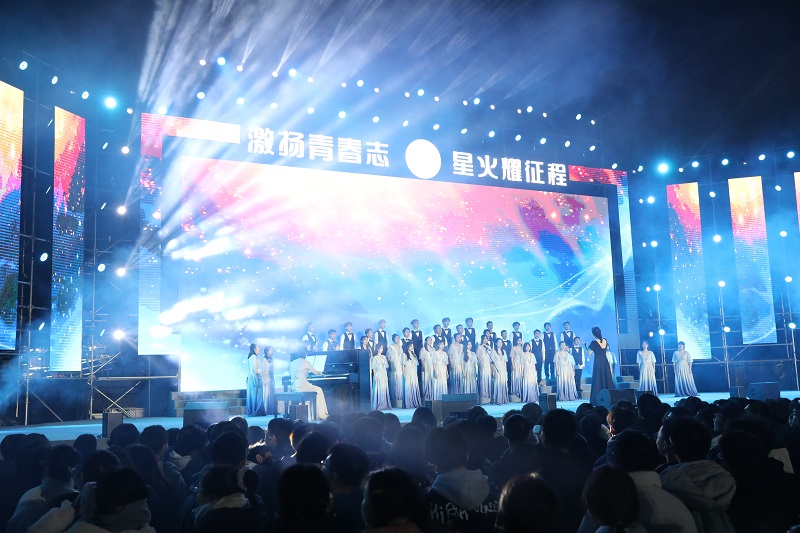 为创建和谐校园,厚植学生家国情怀,进一步提高学生综合素质,丰富其课余文化生活,12月8日晚,我校迎来了纪念“一二·九”运动88周年暨第13届校园社团艺术节文艺汇演。绵阳师范学院和四川省新华强制隔离戒毒所相关领导莅临活动现场,我校万余名师生齐聚第一运动场共同见证这场盛宴。街舞社带来开场舞《Black Crush Crew》,热情洋溢、活力四射的舞蹈赢得现场阵阵掌声和欢呼声。观众们热情高涨,手中挥舞着荧光棒,兴高采烈,期待万分。