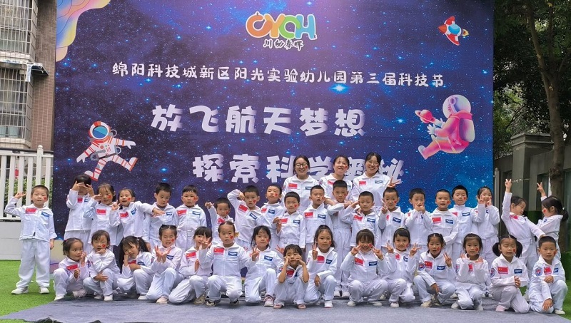 为推进旗下特色园所打造,深化园所内涵发展,近日川幼春晖在阳光实验幼儿园举办第三届科技节活动。本次科技节以“放飞航天梦想 探索科学奥秘”为主题,以探究航空航天等科学奥秘为主线,通过参与、互动、体验等形式,助力孩子们科学启蒙教育,提升学习科学知识的热情。