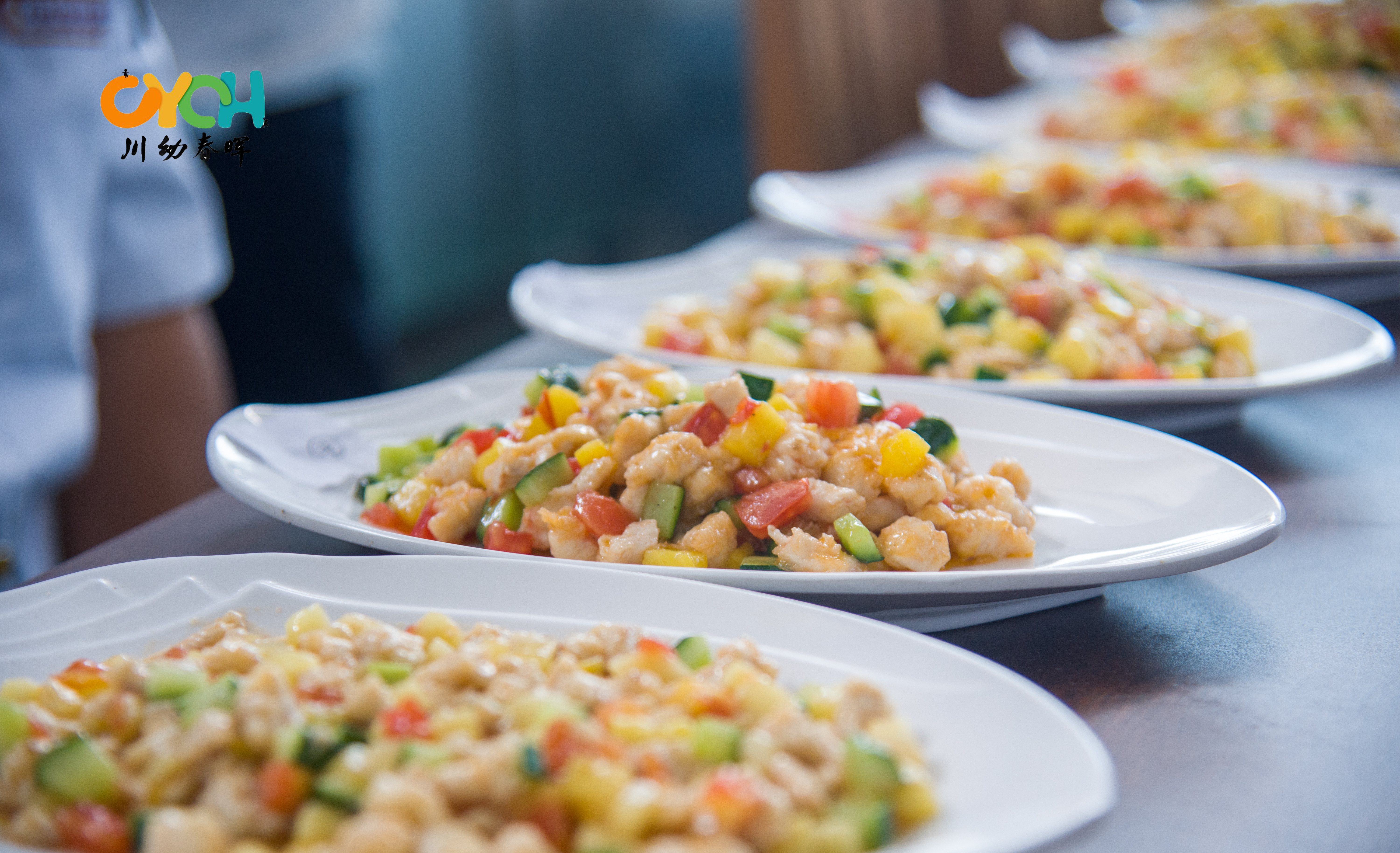 明星厨校谢校长从食材验收、食物加工烹饪中的注意事项等环节进行详细介绍。绵阳市中心医院营养师杨老师就学龄前儿童如何营养配餐方面进行了培训。