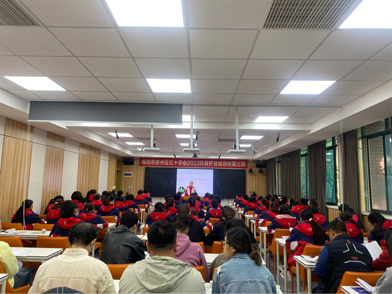 4月25日,绵阳中学实验学校邀请安州区红十字会到校开展了以“救在身边 校园守护”为主题的2023年红十字救护员培训活动。绵阳中学实验学校全体体育教师、生活老师、安保人员等共100余人,通过前期约2周的线上网络培训后,于今日在学校录播教室3参与本次线下培训和考核。