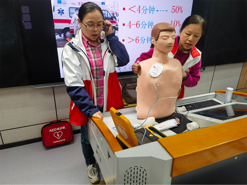 培训结合校园应急救护实际需求,将心肺复苏、气道异物梗阻解除术、骨折包扎固定等常见、重要的公共卫生应急技能以及AED的正确使用方法纳入培训内容。学员们在老师的指导下积极参与,互相交流,提高了应急救护能力。