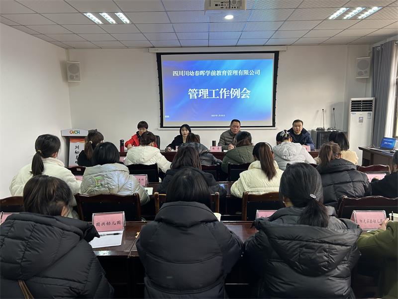 1月30日,川幼春晖召开2023年第1次管理工作例会。会议总结了2022年全局工作取得的成绩,谋划开年重点工作,进一步统一思想。会议由人才集团党委委员、副总经理,川幼春晖执行董事陈清主持。公司全体干部职工、各幼儿园负责人参加会议。