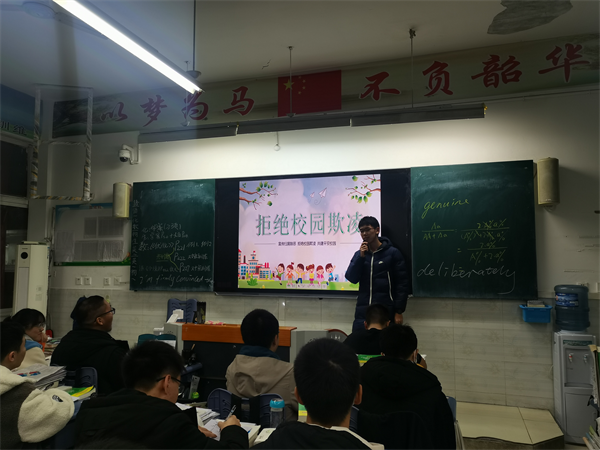 11月23日下午,各班级召开“预防校园欺凌 共建和谐校园”主题班会。班主任通过一个个案例的学习和相互讨论,让学生知道了什么是校园欺凌,认识到了校园暴力的危害,懂得了如何避免和预防校园欺凌,学会怎样保护自己。同时引导同学们通过换位思考去理解被伤害者的内心感受。此次主题班会提高了学生对欺凌和暴力行为严重危害性的认识,增强了学生的预防校园欺凌和自我保护意识,进一步规范了自身行为,增强学生遵纪守法的自觉性和主动性。