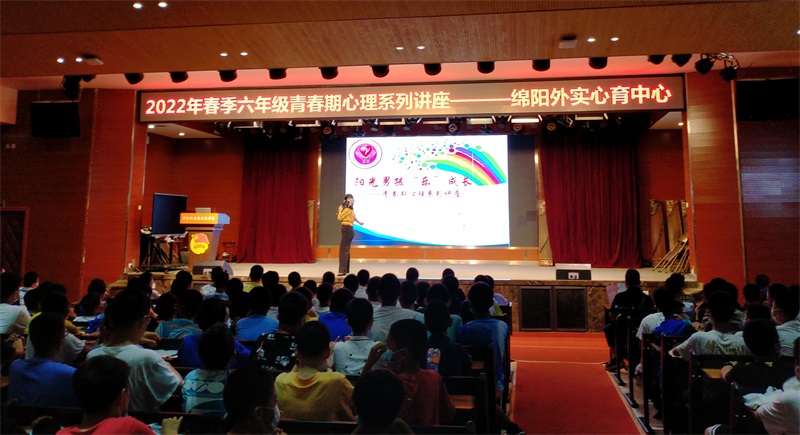 为更好地关心和爱护每一位学生,给学生普及青春期身心健康知识,让他们不断提高自我保护意识,形成正确的性心理观和人生观,绵阳外国语实验学校心育中心于5月9日、10日下午在学术厅分别举行了主题为《花季少女初绽放》《阳光男孩“乐”成长》的心理系列讲座。
