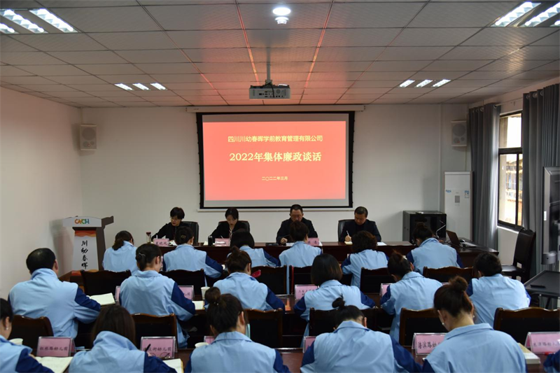 近日,川幼春晖召开集体廉政谈话,全面落实从严治党,筑牢党员干部拒腐防变思想道德防线。集团副总经理、川幼春晖董事长陈清出席会议并发表讲话,各幼儿园管理层、公司全体干部职工参加会议。