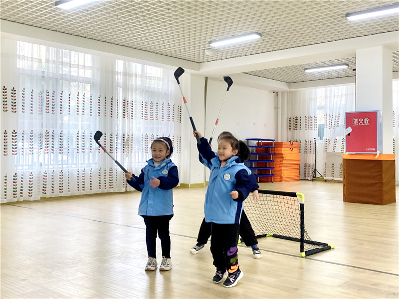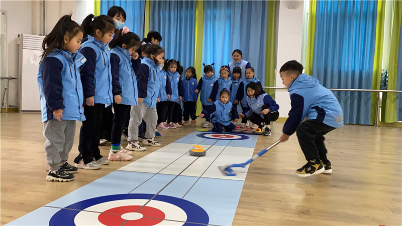 园长张庭玲介绍,这次冰雪游戏活动的开展考虑不同年龄段的幼儿身心发展的特点,老师和幼儿一起设计了“冰壶、冰球、滑雪”体育游戏项目,“希望通过此次活动的开展,让幼儿养成从小爱运动、爱健身、爱健康的好习惯,培养幼儿热爱运动的兴趣。”