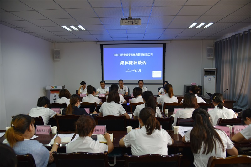 近日,川幼春晖召开集体廉政谈话会议,全面落实从严治党,筑牢党员干部拒腐防变思想道德防线。集团纪委书记赵联琴、川幼春晖董事长陈清出席会议并讲话,公司全体干部职工、各幼儿园管理层参加会议。