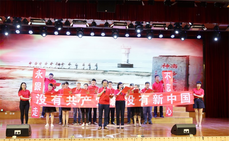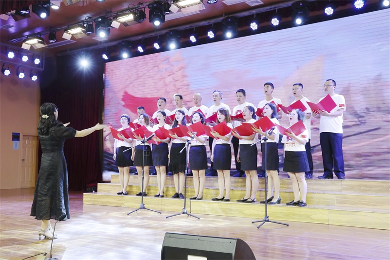 忆党史、铭党恩,学校全体党员传唱经典,共同庆祝中国共产党百年华诞。《东方之珠》、《党的赞歌》、《没有共产党就没有新中国》……动人的旋律,嘹亮的歌声,讴歌了党的百年光辉历程,表达了对党的深情、对祖国的美好祝愿。