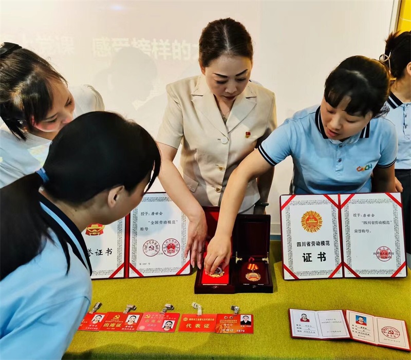 党课中,唐世会同志以“最美绵阳人﹒建功新时代”为主题,分享了她从流水线作业的插件工到十九大党代表、全国劳动模范、四川省“党的女儿”的成长故事,号召大家立足平凡岗位、做出不凡业绩。