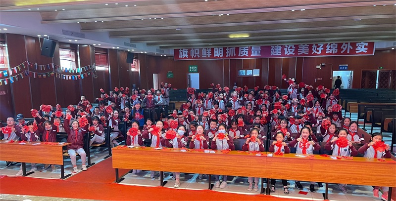 为加强中华优秀传统文化教育,培养青少年一代的文化自觉和文化自信,让少儿从小牢记党的历史,传承和发扬红色剪纸文化。绵阳外国语实验学校小学开展了以“红心向党,致敬祖国”为主题的百人剪纸培训活动,活动由我校非遗剪纸工作坊王菱鸽老师主持,三百余名四、五年级同学参加。