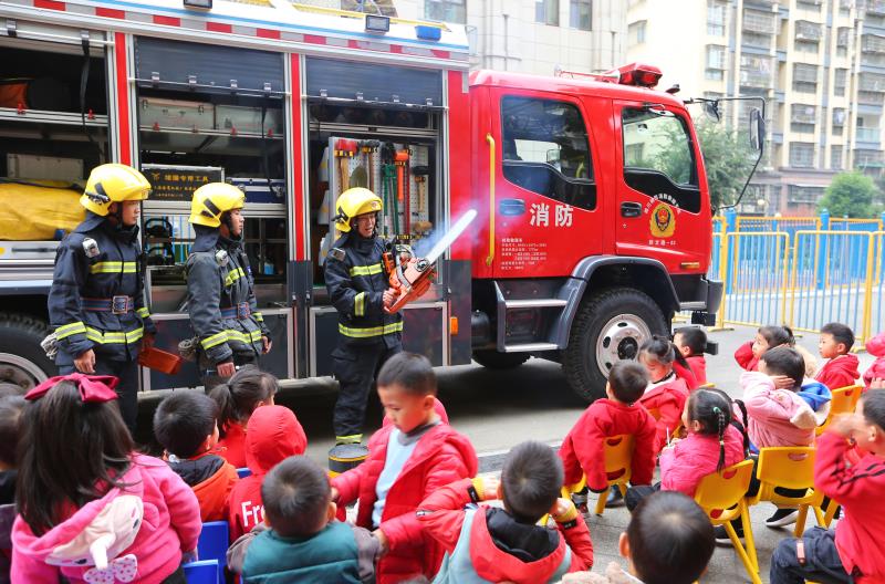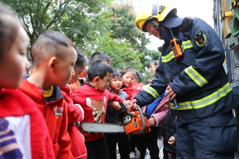 针对幼儿年龄小、好奇心强、理解能力较低的特点,消防员采用讲故事、现场模拟、亲身体验等方式,向小朋友们介绍了几种常用的消防工具及使用方法,并让幼儿园小朋友零距离体验消防器材,让孩子们亲身体验“火灾现场”,加强自我保护能力。