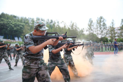 “立正!”“稍息!”“报数!”“向中看齐!”“向前看!”“跨立!”“蹲下!”“向左转!”“向右转!”“向后转!”“齐步走!”“跑步走!”……历经8天的高温锤炼与洗礼,同学们稚气的脸庞多了一份坚毅,少了些许娇气。军体拳、匕首操、操枪表演、三防急救…整齐的动作、高亢嘹亮的口号、朝气蓬勃的精神面貌,博得了现场阵阵热烈的掌声。
