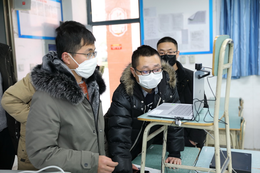 教导处丁劲松主任强调了网络教学的具体要求。信息中心魏远阳主任进行网络教学的软硬件使用培训,各年级主任体验了学生端的使用情况。学校各年级分管教学的主任进行了网络直播的培训。物理教师李冀讲授了一堂物理课,进行了教学试播。