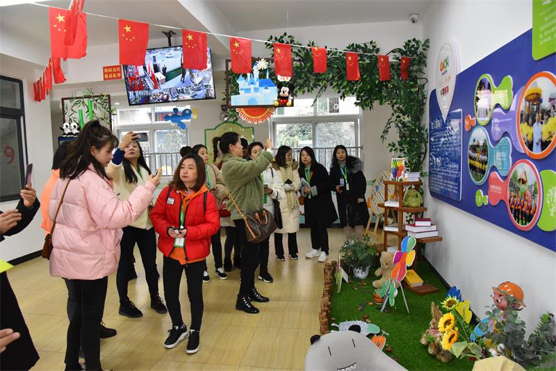 在园区教师的带领下,园长们通过观看早操、参与幼儿的区域活动、游戏活动、集中探讨的形式对幼儿园进行观摩。园兴幼儿园教师对园所文化及园所环境作了介绍,园长们对川幼春晖的办园理念及办园特色给予了高度评价。
