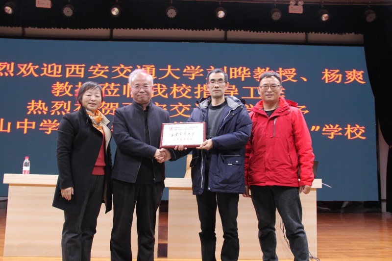 11月19日,西安交通大学与绵阳南山中学实验学校共建优秀生源基地授牌仪式暨西安交大“教授科普讲座”在南实第二学术厅举行,西安交大刘晔教授与南实骆泉龙副校长分别代表学校签订共建协议。