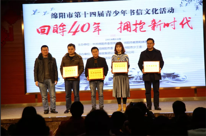 12月21日上午,由中共绵阳市委宣传部、绵阳市教育和体育局、共青团绵阳市委、绵阳市少工委主办,中国邮政集团公司绵阳分公司承办,绵阳外国语实验学校协办的“绵阳市第十三届青少年书信文化活动表彰暨第十四届书信文化活动启动会”在绵阳外国语实验学校学术报告厅顺利举行,绵阳外国语实验学校荣获“优秀组织奖”。