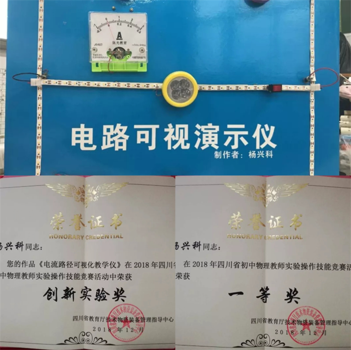 12月20-22日,为期三天的四川省初中物理教师实验技能竞赛在成都市华西中学圆满闭幕。绵阳外国语实验学校杨兴科老师代表绵阳市参赛,荣获两项最高奖:“初中物理实验技能竞赛一等奖”以及“创新实验奖”,其设计的创新实验——电流路径可视化教学仪,得到了评审专家以及教育同行们的认可和赞许。