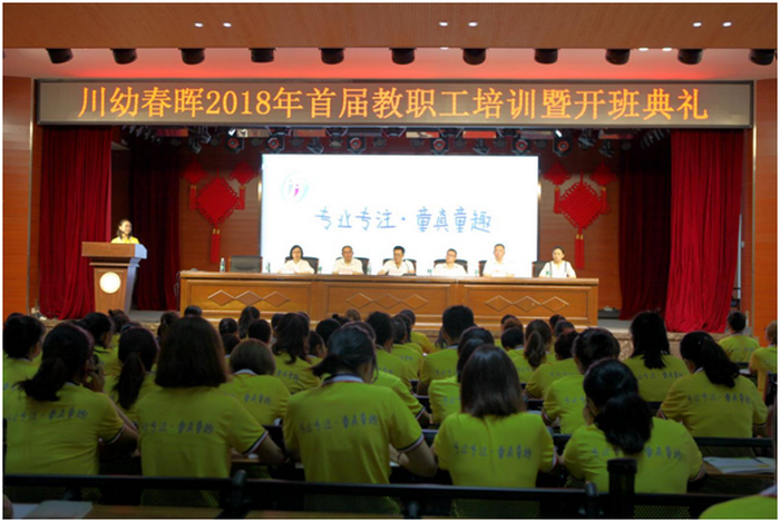 为提升公司各岗位教职员工专业知识,增进学员与学员、公司与学员相互了解,促进各幼儿园之间沟通,增强团队意识。2018年8月21日,川幼春晖全体教职员工齐聚绵阳外国语实验学校,参加为期两日以“专业专注铸辉煌,童真童趣圆梦想”为主题的首届教职工培训。早上8点,老师们就迎着朝阳陆续到达外国语实验校门,以朝气蓬勃、活力四射的面貌迎接领导一起进行集体合影。全体员工焕发的热情与团队责任感展现了春晖人上下团结一心,牢不可破的凝聚力,是一支具有进取精神、意志顽强的队伍。