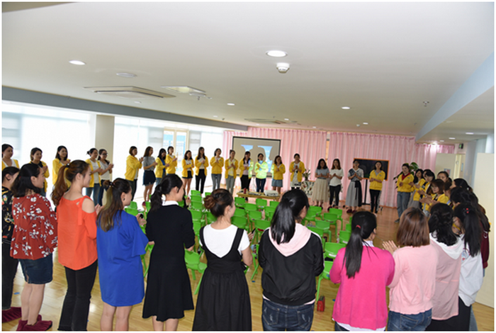 在本次分享活动中,团队成员通过图片、视频、案例、游戏引领、理论讲解等方式分别从“发现美的开始”“幼儿园主题活动”“自然缺失症”“主题环境创设”“文化与教育的形成”等方面深入浅出地进行了细致分享。重点提出要注重孩子的社会性发展,通过体验式的环境来培养孩子的良好习惯,让环境记录课程,环境延续课程,环境做孩子的第三位老师,环境作为文化的外部体现和重要的教育资源,应通过环境的创设和有效利用促进幼儿的发展。紧接着参会的人员分成四个小组进行了热情洋溢的讨论,每位老师都分享了自己的收获与感悟,并一致表示通过这样的分享,更重要的是结合我们自身的特点,不断反思改进,锐意进取,因地制宜内化为自己的特色。活动最后在郭丽娟园长的带领下朗诵“行动主义”的诗,勉励大家要立刻行动,逐步提升各幼儿园的办园品质。