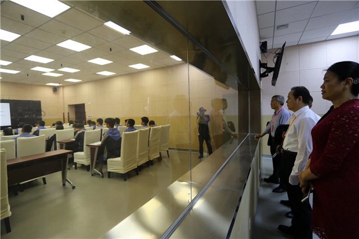 在南山实验膳食中心,姚副秘书长询问了南山实验的食品安全工作,南山实验学校谭校长进行了详细汇报。在课堂录播室,姚副秘书长察看了正在进行的语文公开课,谭校长向姚秘书长汇报了南山实验在教学改革上的一系列新举措,姚副秘书长对此进行了充分肯定。