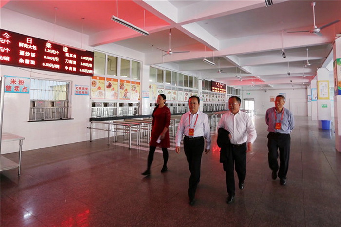 是日上午10点,在绵阳市政协副主席尚丽平,集团公司董事长陈建强、副总经理蒲昌文、南山实验校长谭世贵等陪同下,姚其清副秘书长等领导深入南山实验校园,对南山实验课间活动、膳食中心、课堂录播室、第二学术厅教学观摩室等地方进行了视察。