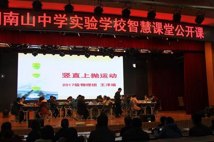 2017年12月21日,绵阳南山中学实验学校智慧课堂公开课教学研究活动在第一学术厅举行,高一年级王泽福老师、宁树老师、李林老师分别上了一堂物理、英语和生物课公开课,学校对应科目的任课教师参加了教研活动。