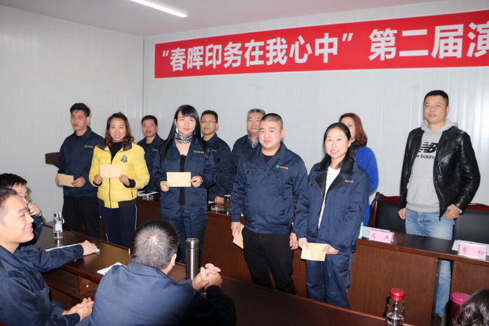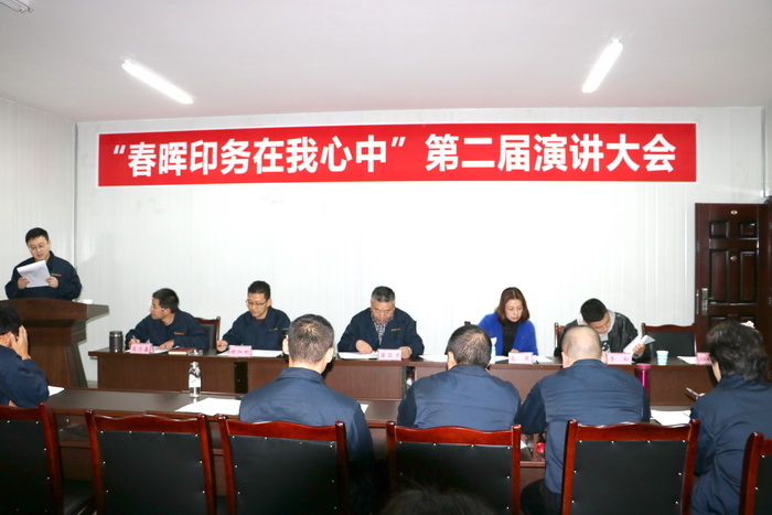 10月31日下午印务公司在厂部二楼会议室组织举办了第二届“春晖印务在我心中”演讲比赛。印务公司执行董事蒲昌文,总经理谢加明,副总经理石月鑫,教投公司综合部经理高燕,投融资部经理胥松出席了活动并担任评委。公司各部门及三校文印室共40人参加。印务公司总经理谢加明代表公司向比赛的成功举办表示热烈的祝贺。他指出,本次演讲比赛的目的是为了展示公司职工立足本职、奉献自我的良好风采和聪明才智,增强职工爱企、爱岗、敬业奉献的意识。希望全体职工能充分利用公司提供的各种平台,更加勤奋,更加踏实,更加努力工作,在全面推进公司发展建设中,实现自我价值,与公司共同走向成功。