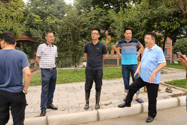 7月4日-7月5日,我市普遍降大雨到暴雨,据绵阳市气象局预测,今年汛期有2-3次区域性大暴雨天气,绵阳局部地区已出现山体滑坡、泥石流等险情。为确保公司、三所实验学校、子公司平安度汛,7月4日-7月6日,公司董事长陈建强,总经理廖昭宏,党总支书记、副总经理田仕富,副总经理蒲昌文、郭劲、陈清多次组织安全检查小组按照“雨前排查、雨中巡查、雨后复查”的方针,对三所实验学校、红星幼儿园、春晖花园项目进行安全检查。