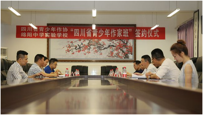 6月3日上午10点,四川省青少年作家协会主席王永忠、秘书长向乾丽、办公室主任郭科、创联部主任张晨曦一行莅临我校,出席四川省教育厅、四川省作家协会、四川省青少年作家协会主办的“四川省青少年作家班”合作协议签约仪式,这标志着该项目正式落户绵阳中学实验学校。学校党委书记、校长翟勇及全体党委委员出席签约仪式。