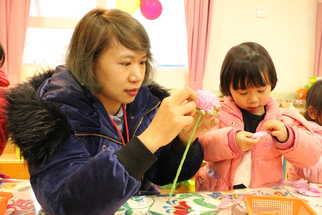 在教师们的精心组织下,《我的好妈妈》、《世上只有妈妈好》、《Mummy I love you》等一支支稚嫩而甜美的儿歌,为各班活动拉开帷幕。通过《妈妈百变秀》、《制作康乃馨》、《妈妈的项链》、《我为妈妈做头发》、《兜兜海洋球》等亲子、手工以及游戏活动,一次次将现场气氛推向高潮。妈妈们在活动中感受着幸福与快乐,同时也为孩子们的成长与进步感到骄傲与自傲,很多妈妈在现场忍不住留下了激动而又幸福的泪水。