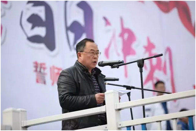 谭世贵校长揭开倒计时牌后,开始大会讲话。谭校长简要回顾了学校办学以来的各项重大业绩、分析了学校高考数据,特别提及学校“内涵发展、个性培养”思路的先发优势和强大后劲。“艺体生专业成绩全上线、奥训生李健与清华大学签订上重本录取协议、小升初直升班、精英课改班、艺体特训班、留学直通班……”,谭校长欣喜于学校卓越成就的同时,也明确表示,全体行政、老师都必须牢记职责、关爱学生,告诫同学们志存高远、勇往直前,希望同学们踏实学习、提高效率,祝福所有同学金榜题名、圆梦南实。