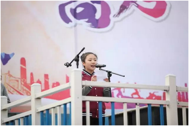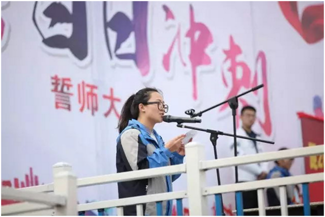 操场上鼓声铿锵、春阳普照,高三32班陈亭羽作为参考学生代表发言并领誓,在场同学无不深受鼓舞。