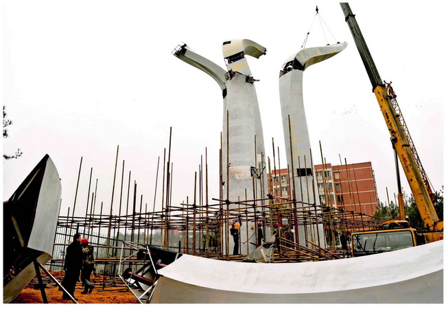 教育园区标志性标识项目是由我公司负责的“美丽绵阳”重点项目,项目包含4个大型雕塑。自10月17日招标工作完成后,公司成立了5个小组(1个制作督导小组,4个现场协调小组)全面推进各项工作,在不到两个半月的时间内,先后开展了土地赔付、勘探、设计、施工等工作。通过落实责任到人,细化工作任务,严控工期节点,目前各项建设任务已按照节点基本完成。