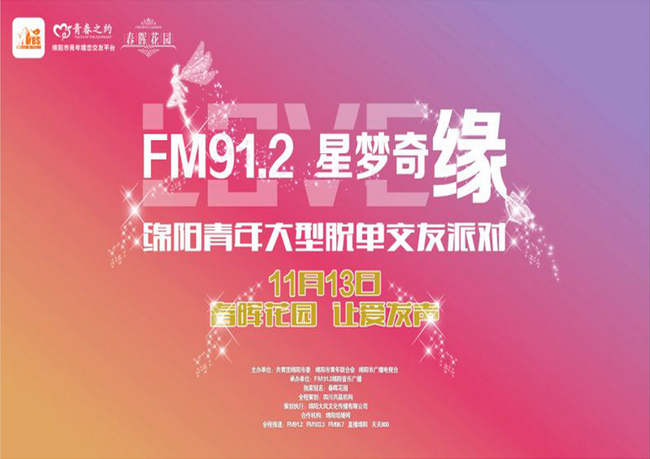 春晖花园FM91.2星梦奇缘绵阳青年大型脱单交友派对11月13日绽放教育园区