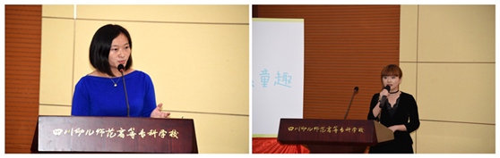 教投公司董事长陈建强、总经理廖昭宏,四川幼专党委书记闵永祥、校长王向东共同为川幼春晖的理念及LOGO揭幕,并分别为获得一等奖、入围奖的创作团队颁奖。主创粟怡、邓镒潇分别就办园理念、LOGO作了释义说明。