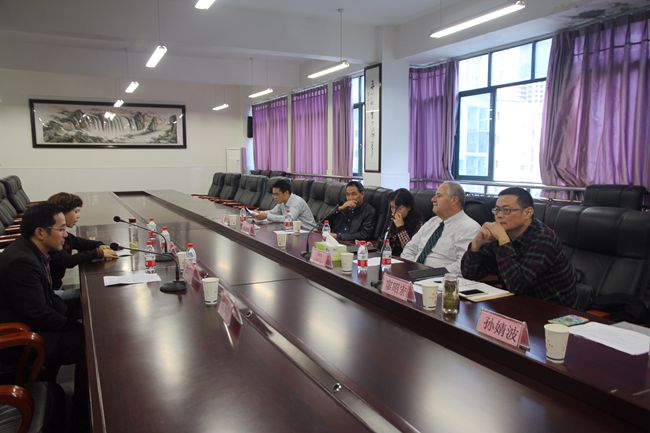 10月15日上午,美国LeeAcademy学校校长Gus Leblanc先生与四川美术学院教授杨晓斌一行来园区交流访问。绵阳市教育投资发展有限责任公司总经理廖昭宏、学校工作部经理孙婧波、投融资部业务主管万承刚,绵阳中学实验学校副校长郑国学、外国语实验学校副校长罗萍、绵中实验党委副书记龚晓华、外事办主任杨益热情接待了Gus Leblanc一行。